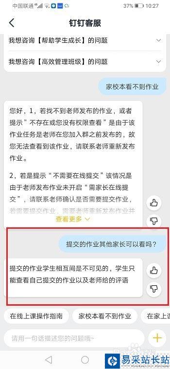 釘釘提交的作業其他家長能看到嗎?