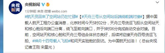 天舟三號從空間站后端繞前端對接 ... [更多詳細]