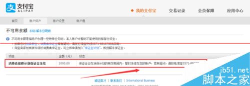 5、看完賬戶的余額之后,我們看到在賬戶余額下面有一個不可用的1000元,我們這時候點擊下查看按鈕。