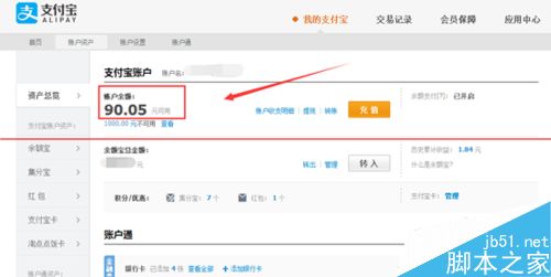 3、輸入支付寶賬戶密碼后即成功進入了支付寶后臺管理頁面,在支付寶的后臺頁面我們看到一個賬戶資產的選項,我們點擊打開它。