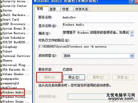 6、每個設備都有依賴的服務,音頻設備也不例外,如果相應的服務沒有開啟的話,那么沒有聲音也屬正常。和聲音相關的服務是一個叫做windows audio的服務,我們可以進入到服務列表查看它是否開啟,如果沒有開啟的話把它開啟即可解決問題。
