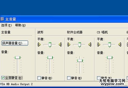 3、接著小編介紹的這種原因很少會發生,但是也極容易被忽略,那就是勾選了全部靜音。當我們勾選了全部靜音的時候,我們將聽不到任何聲音,雖然這種情況很少會發生,但也不是不可能發生,如果勾選了全部靜音,只需要去掉即可恢復聲音。