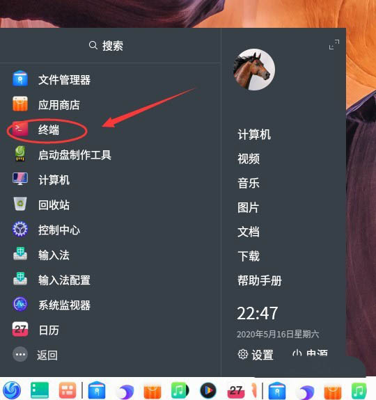 2、處理該問題的方法,可以更換為deepin15的軟件源。相關的操作如下,從開始菜單中打開終端應用窗口。