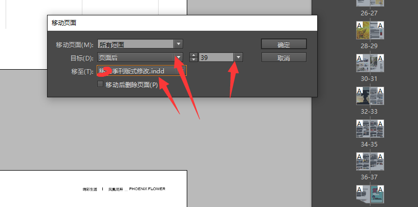 6、頁面后有一個頁數填寫,就是你將你要移動的文件放在哪個頁面之后,小編這邊是放在39頁面,移至一欄,