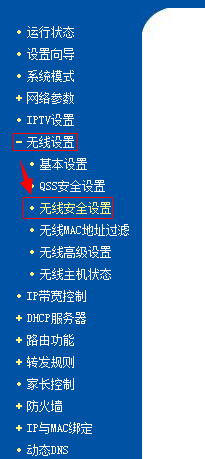 點擊”無線設置“前面的加號,展開菜單,選擇”無線安全設置“。