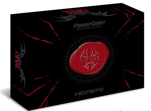 包裝方面:作為迪蘭恒進的高端品牌,DEVIL的包裝還是非常上檔次的,采用了時下流行的紅黑配色,盡管是DEVIL系列中的最低端,但是DEVIL7870的顯卡盒子仍然十分巨大,幾乎達到了高端主板的盒子大小,十分大氣。