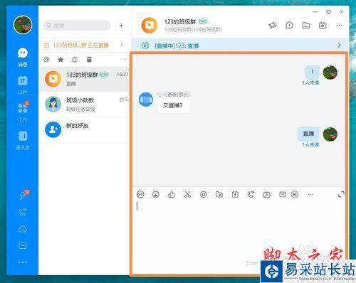 我們需要回到班級群,在班級群里發消息,我們在班級群里發的消息會以彈幕的形式發送到班級群直播中。