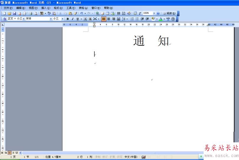 2、輸入通知兩個(gè)字,將字體加粗,放入居中對(duì)齊的部位,如圖所示