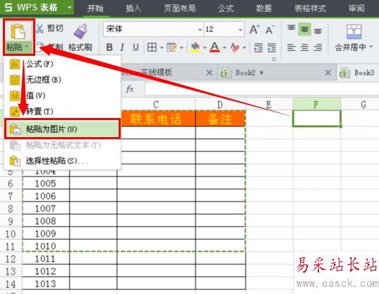 4、將光標定位到某個單元格中(也可以在原位置),然后單擊“粘貼”(下三角)按鈕→“粘貼為圖片”。