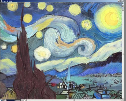 對于國際大師梵高的《星夜》來說,被廣泛認為是他的代表作之一。這幅畫中呈現兩種線條風格,一是彎曲的長線,一是破碎的短線。二者交互運用,使畫面呈現出炫目的奇幻景象。這顯然已經脫離現實,純為梵高自己的想象。在構圖上,騷動的天空玉平靜的村落形成對比。柏樹則與橫向的山脈、天空達成視覺上的平衡。全面的色調呈藍綠色,畫家充滿運動感、連續不斷的、波浪般急速流動的筆觸表現星云和樹木;在他的筆下,星云和樹木象一團正在熾熱燃燒的火球,正在奮發向上,具有極強的表現力,給人留下深刻的印象。