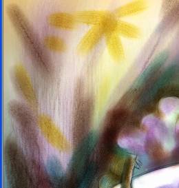 首先畫上背景畫布顏色。把畫筆的size值調大,用輕快的筆法畫出大體效果。(效果見圖七)
