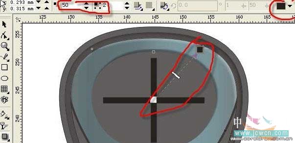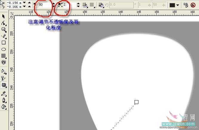 點右鍵編輯內(nèi)容,給減后的對象填充顏色,加上陰影,注意陰影的方向和屬性(陰影的方向根據(jù)你自己心目中光線的方向確定,我這里假設(shè)光線是從右上角向左下角照射)有時為了更完美,我們可以用交互式透明工具對對象進行100%透明,只留下陰影部分。