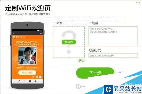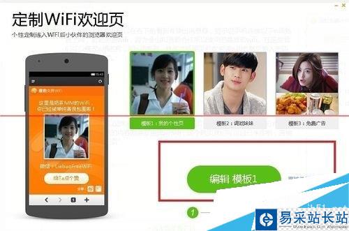 4、然后我們可以定制wifi歡迎頁,wifi的歡迎頁也就是進(jìn)入該wifi時(shí)會(huì)自動(dòng)彈出一個(gè)網(wǎng)頁,網(wǎng)頁的內(nèi)容就是歡迎使用wifi,這個(gè)網(wǎng)頁我們可以自己來定制,直接點(diǎn)擊“定制歡迎頁”,然后進(jìn)去點(diǎn)擊“編輯定制模板”。這樣就可以設(shè)置了,換上自己選擇的照片寫上想說的話點(diǎn)擊下一步就ok。