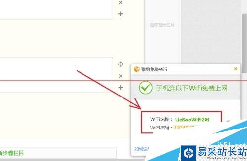 3、點(diǎn)擊之后我們可以在右下角看到有彈出消息框,提示說手機(jī)連接以下wifi免費(fèi)上網(wǎng),獵豹免費(fèi)wifi,因?yàn)榻鹕胶瞳C豹合作所以使用的是獵豹wifi。在這里我們可以修改wifi名稱,和wifi密碼,修改之后用手機(jī)收索該wifi名然后輸入密碼連接即可使用了。